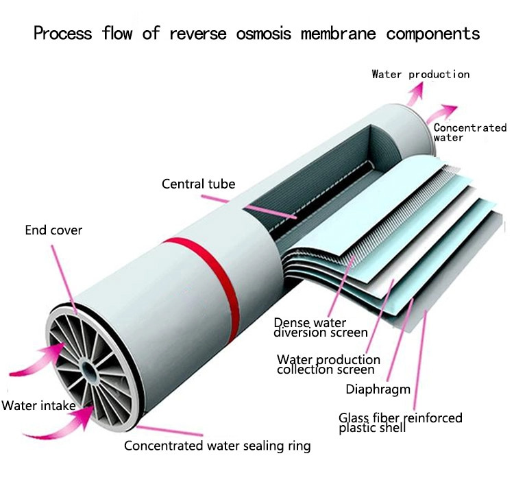 Re: reverse osmosis membrane is a very small aperture filter, able to separate water molecules from solution with high pressure, and prevent most soluble salts, bacteria, virus, and other impurities from going through.